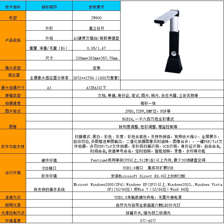 A3 幅面 1000萬像素 定焦 USB2.0標配軟文稿墊,產(chǎn)品特點:折疊式小巧便攜,可接升自由調(diào)節(jié),銀黑色搭配,彰顯高貴,產(chǎn)品高僅為32CM,按鍵開關(guān)、六顆高強光LED補光燈。
