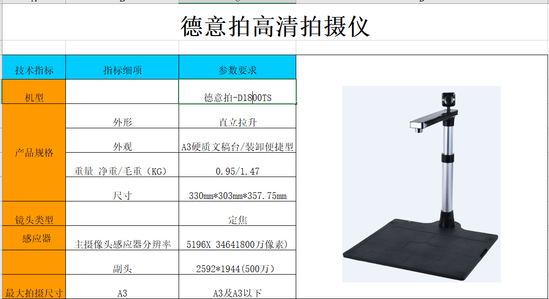 德意拍D1800TS高拍儀