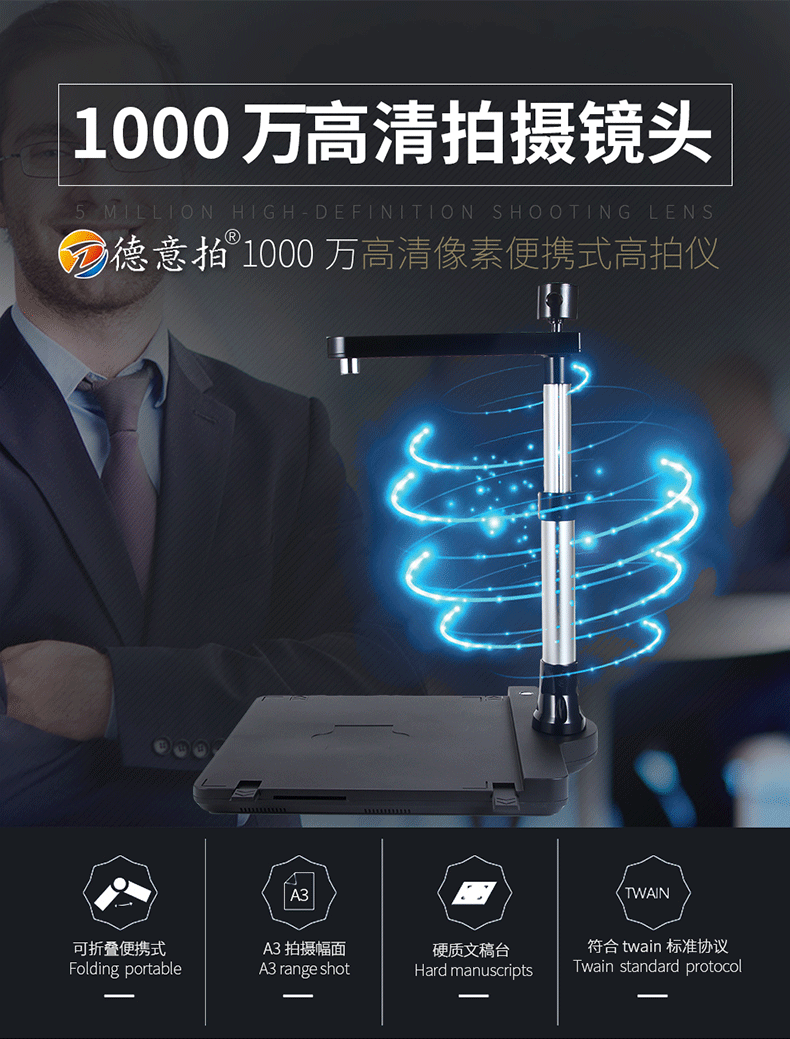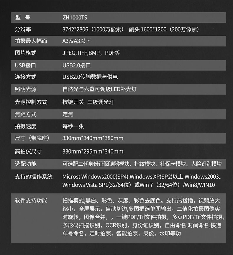 德意拍ZH1000TS高拍儀,可選配身份證,指紋,人臉識(shí)別,標(biāo)配1000萬(wàn)主頭+500萬(wàn)副頭