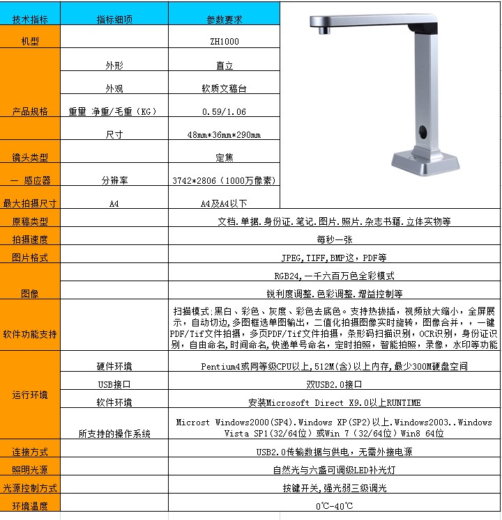 折疊外觀, A4幅面、主頭1000萬像素,雙USB2.0接口
