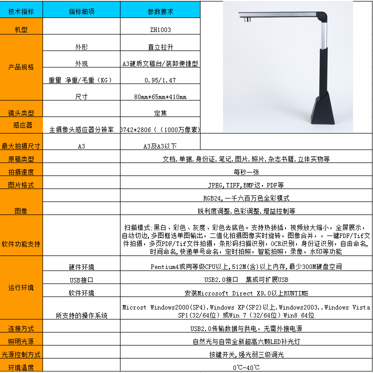 A3 幅面 1000萬(wàn)像素 定焦 USB2.0標(biāo)配軟文稿墊,產(chǎn)品特點(diǎn):折疊式小巧便攜,可接升自由調(diào)節(jié),銀黑色搭配,彰顯高貴,產(chǎn)品高僅為32CM,按鍵開(kāi)關(guān)、六顆高強(qiáng)光LED補(bǔ)光燈。