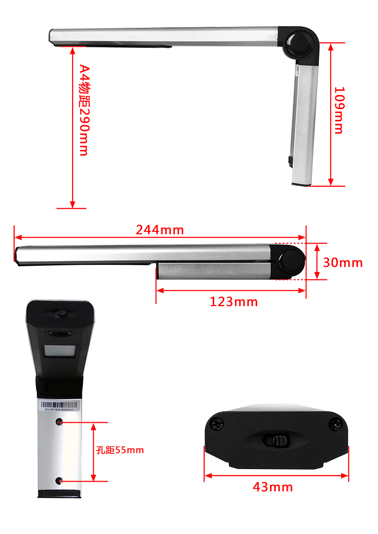 德易拍意拍儀采用便攜可折疊式結(jié)構(gòu)設(shè)計(jì),既能放置于辦公室用做文件、票據(jù)、DV視頻的采集工具,也能隨身攜帶便于移動(dòng)辦公。德易拍意拍儀采用硬件500萬高清攝像方案,具體參數(shù)如下: