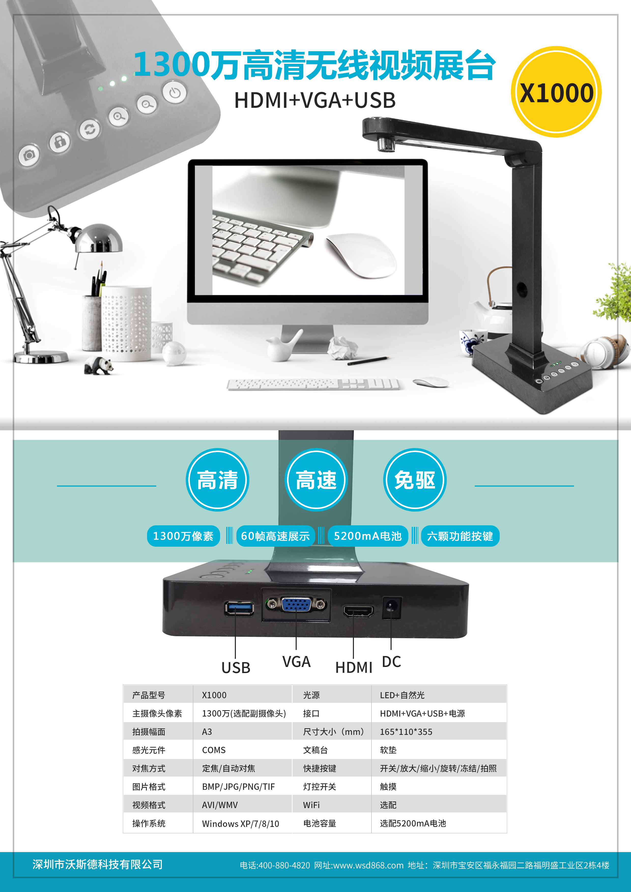 德意拍X1000無線視頻展臺 帶HDMI+VGA+USB接口